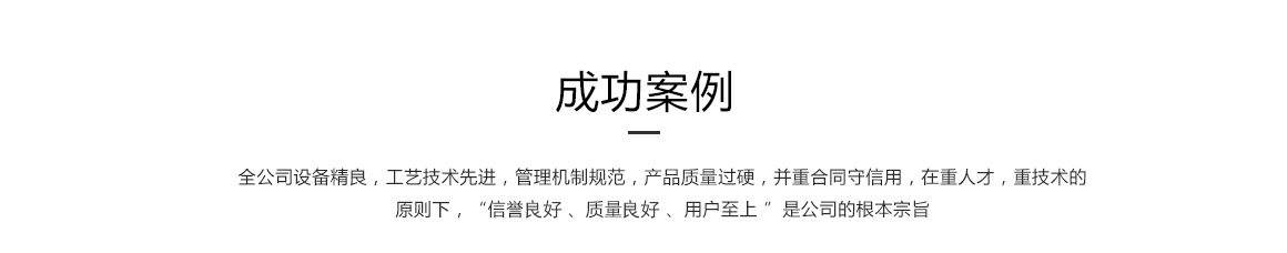 全公司設備精良,管理機制規(guī)范,產(chǎn)品質(zhì)量過硬,并重合同守信用,在重人才,重技術(shù)的原則下,“信譽好 、質(zhì)量標準 、用戶至上 ”是公司的根本宗旨。公司上下,團結(jié)一致,把不斷完善并持續(xù)改進質(zhì)量管理體系作為公司永恒的追求。
